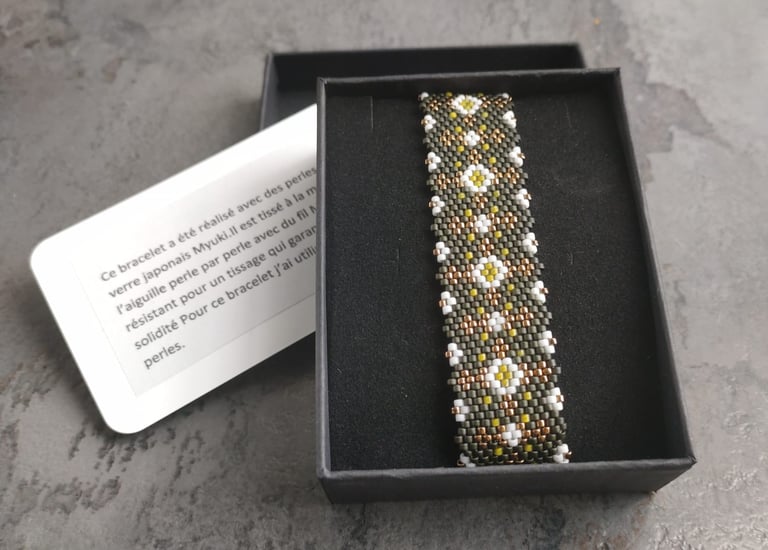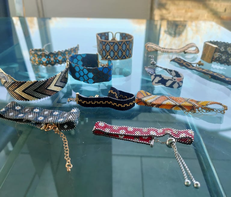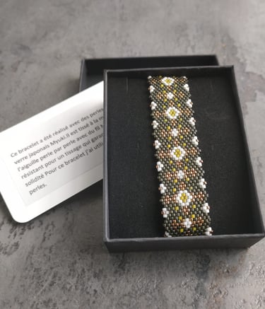 Bienvenue dans l'univers enchanteur de Miyuki des Layes, où chaque bracelet tissé à la main devient le témoin d'une histoire singulière. Grâce à des perles de verre japonaises de haute qualité, chaque pièce reflète une passion profonde pour l'artisanat. Mon processus de tissage, réalisé aiguille en main,perle par perle, privilégie la méthode peyote, garantissant une tenue optimale des perles sur le bracelet. Installée dans les Yvelines, en France, je mets tout mon cœur dans la création de pièces uniques, utilisant des perles Miyuki Delica d'à peine 2 millimètres de diamètre. Ce choix confère à mon travail une finesse et une précision incontournables. Parmi mes créations, mon bracelet le plus large se distingue comme une véritable œuvre d'art, intégrant pas moins de 2500 perles, une prouesse qui illustre la minutie et la passion derrière chaque réalisation.C'est cette attention aux détails qui fait la beauté et l'unicité de mes pièces artisanales.